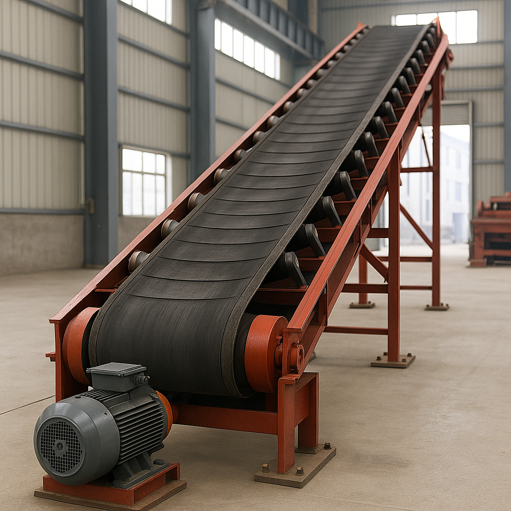 Robust belt conveyor system for transporting raw materials in cement manufacturing units.